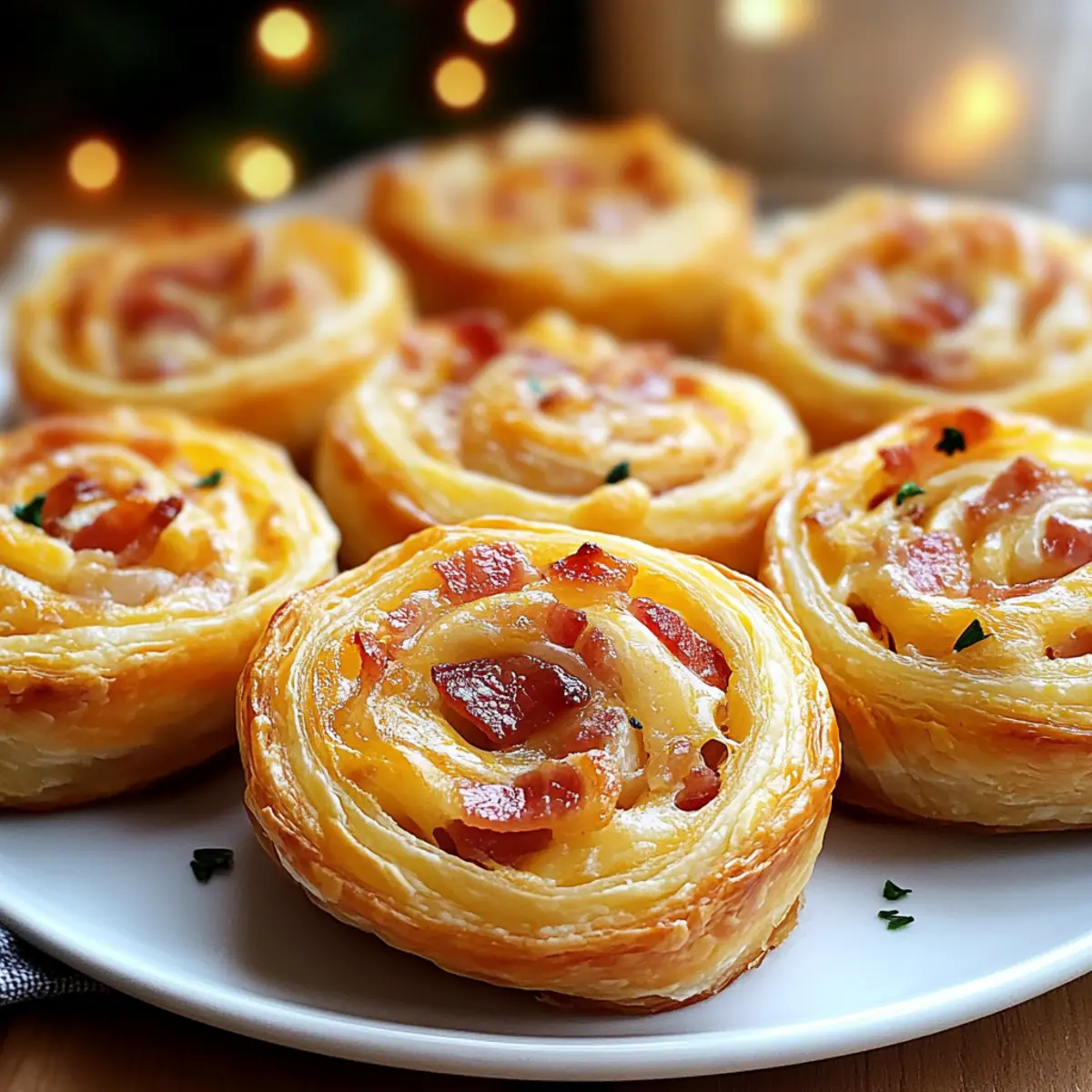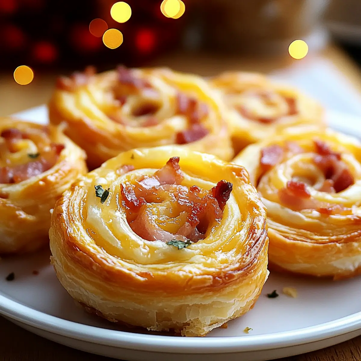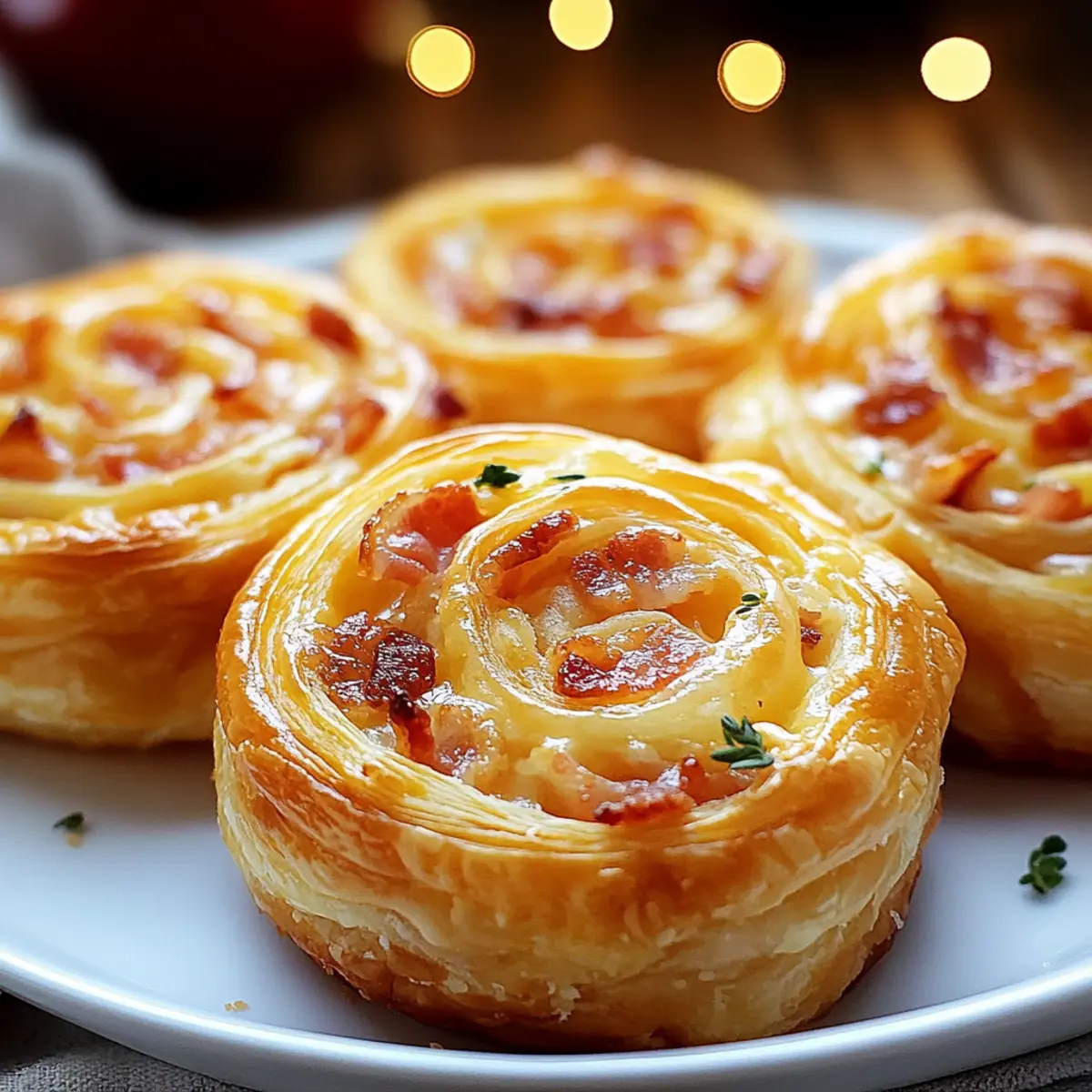 If you’re concerned about dietary preferences or allergies, these pinwheels can be easily adapted! For a gluten-free option, look for gluten-free puff pastry. You can also substitute bacon with turkey or a vegetarian filling like sautéed spinach and mushrooms. Additionally, if you have guests with dairy allergies, there are dairy-free cheese alternatives that work well for flavor without compromising the texture.