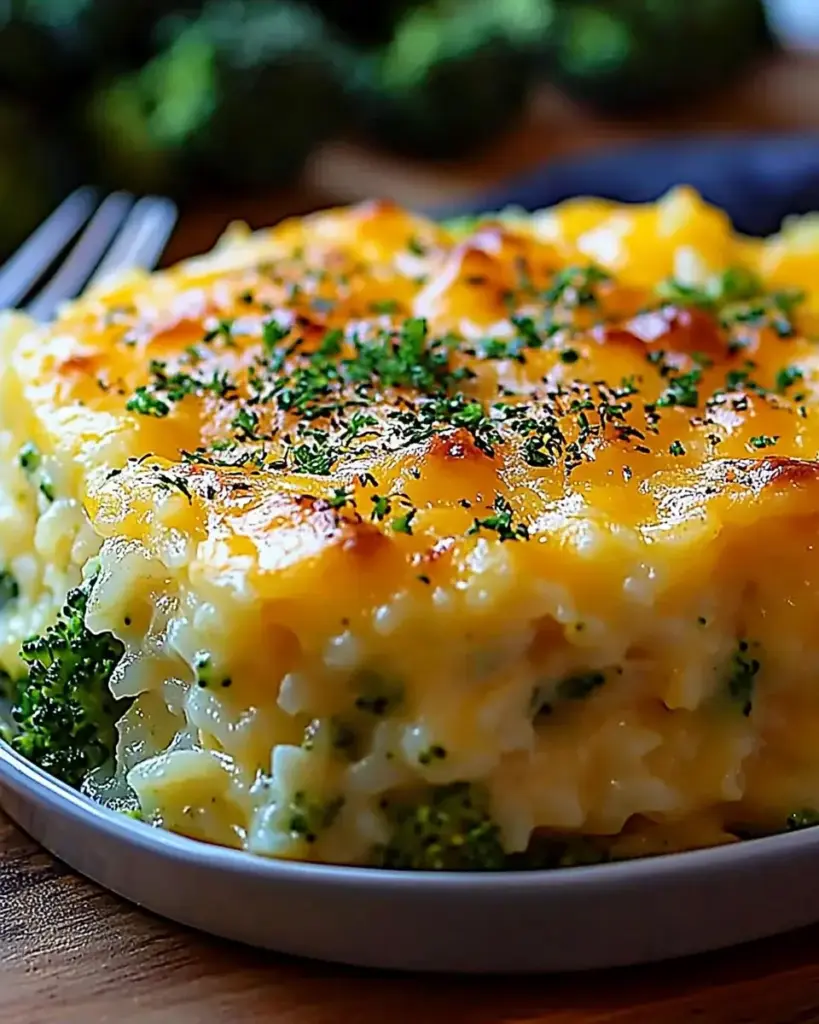 Cheesy Broccoli Rice Casserole is a comforting dish made with rice, broccoli, and cheese, perfect for family dinners.