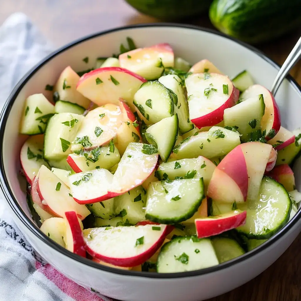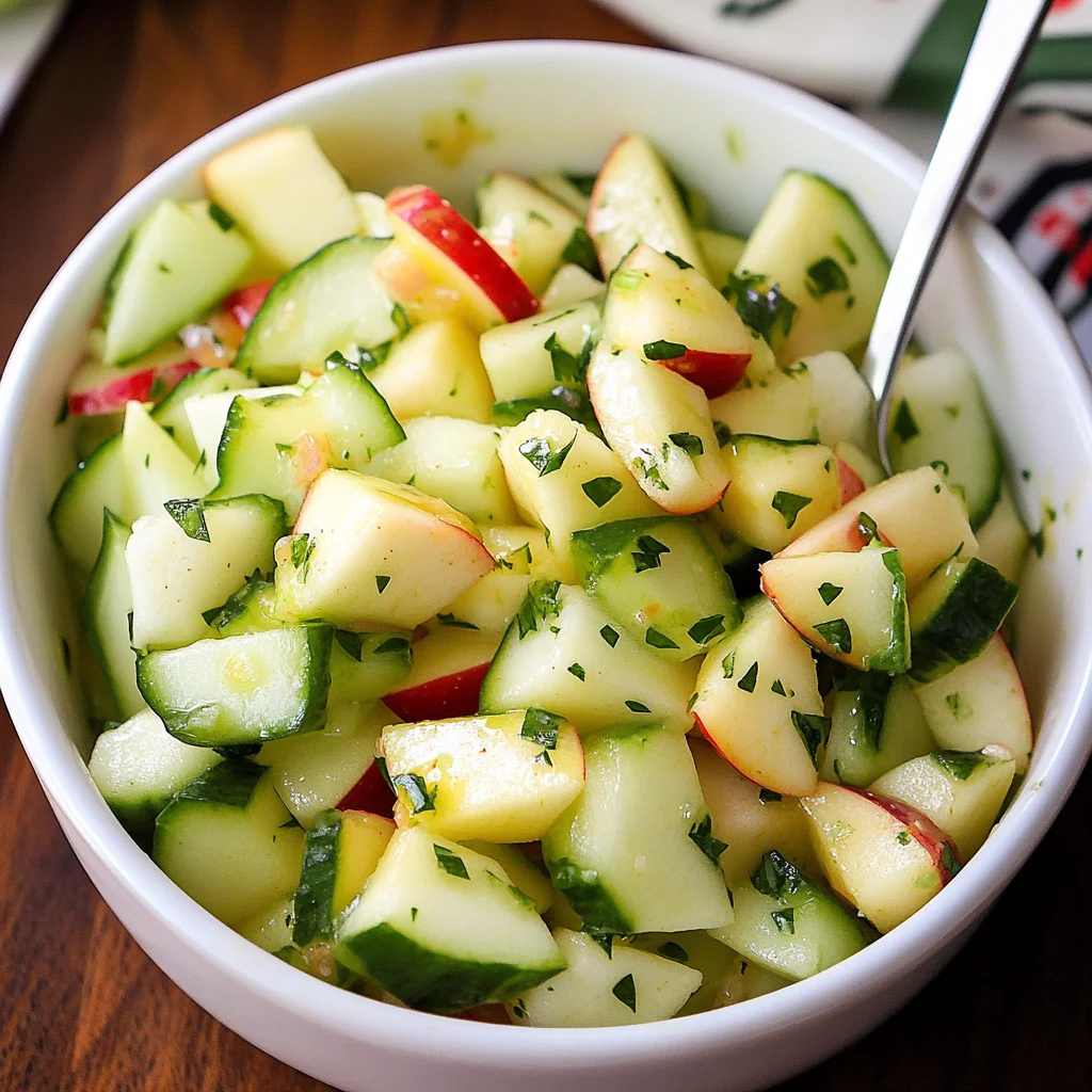 A refreshing and crunchy salad made with apples, cucumbers, and a tangy dressing, perfect for a light meal or side dish.
