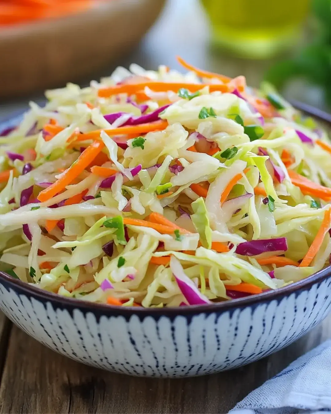 In a large bowl, combine all your prepared vegetables: the green cabbage, red cabbage, carrots, bell pepper, cherry tomatoes, red onion, and parsley. Toss them together gently. The vibrant colors will make your salad visually appealing, and you’ll be excited to dig in!