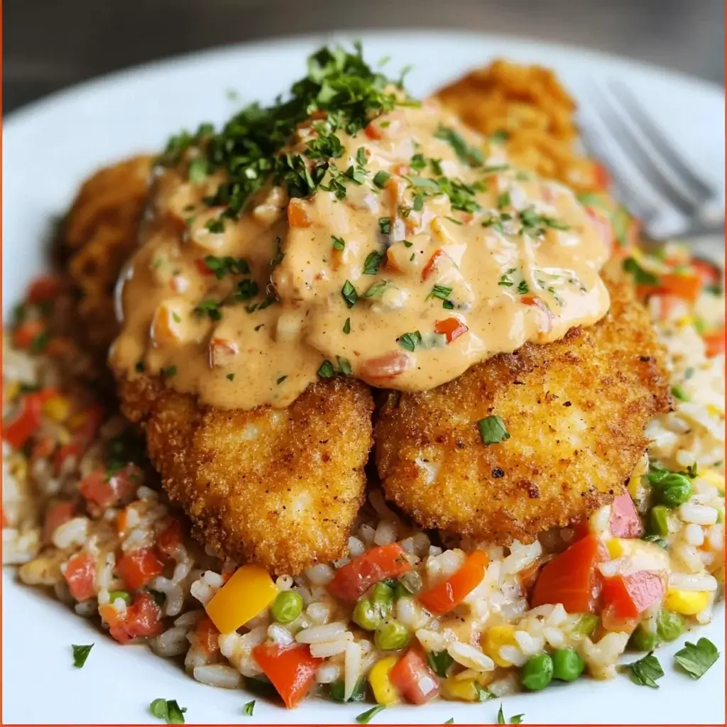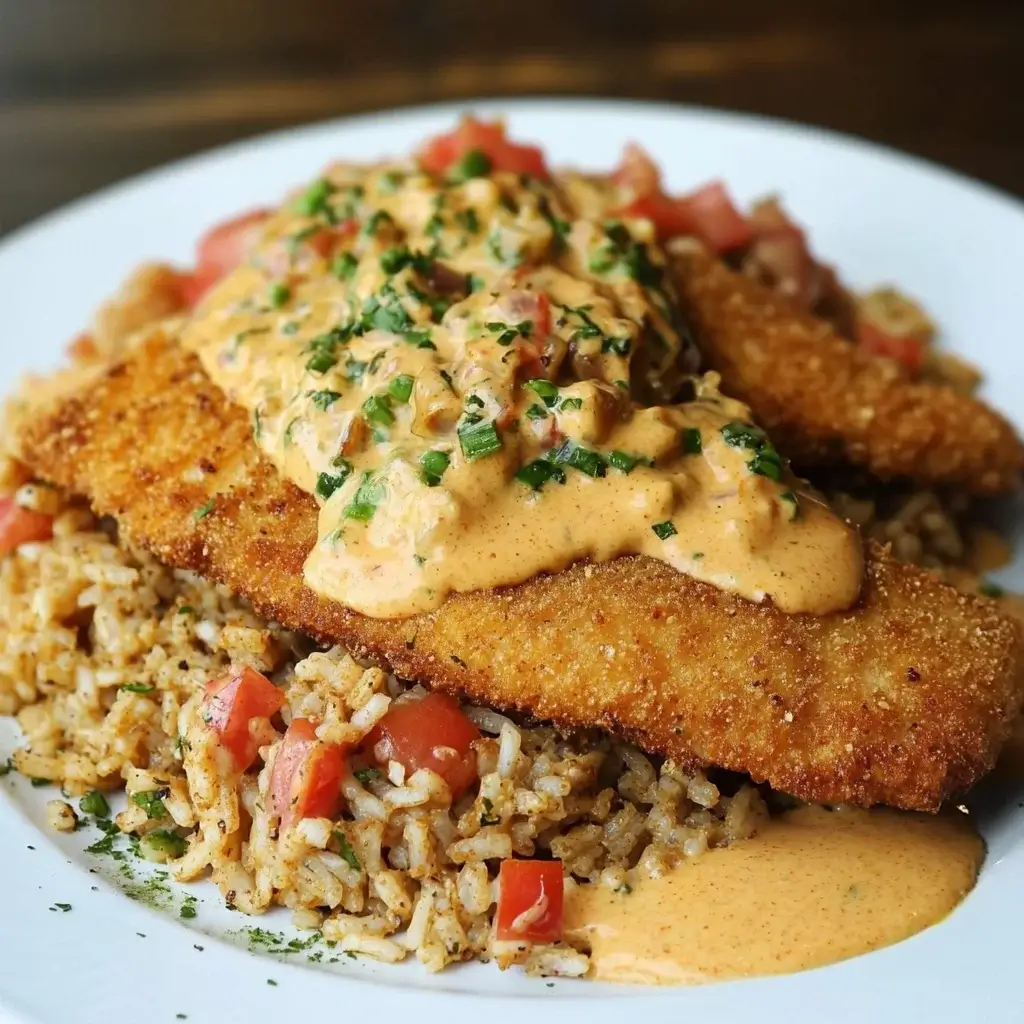 Fried Catfish Over Dirty Rice with Cajun Crawfish Cream Sauce is a delicious and hearty dish that combines crispy fried catfish with flavorful dirty rice and a rich crawfish cream sauce.