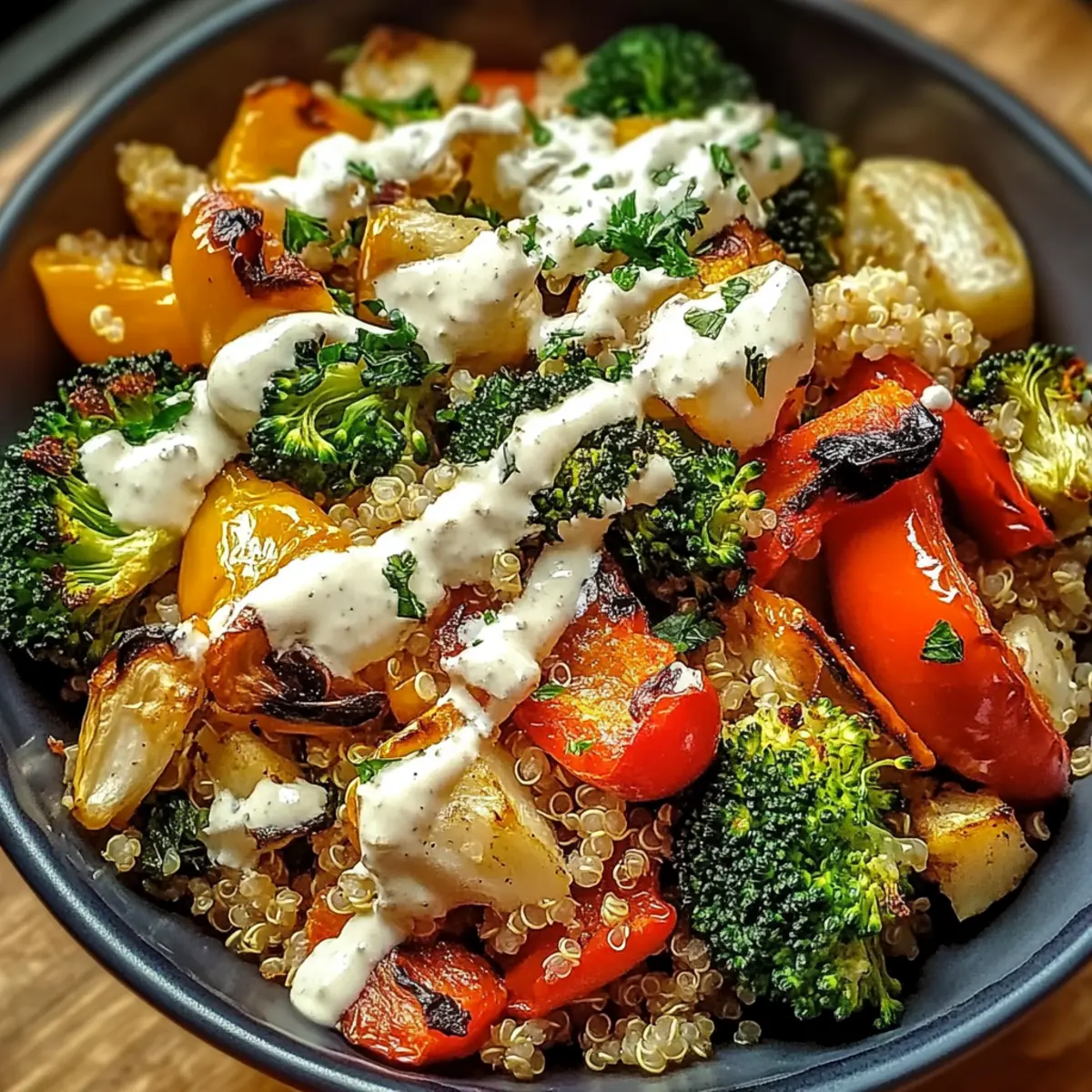 Flavor Explosion: Each bite of the Garlic Roasted Veggie Grain Bowl delivers a burst of savory goodness that leaves you wanting more. The harmonious blend of roasted veggies and fluffy quinoa creates an unforgettable taste experience.
