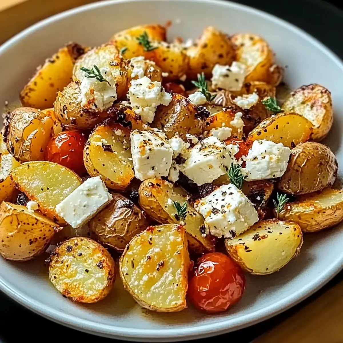 - Gently mix the feta with the potatoes and tomatoes after baking. Garnish with fresh basil or parsley.