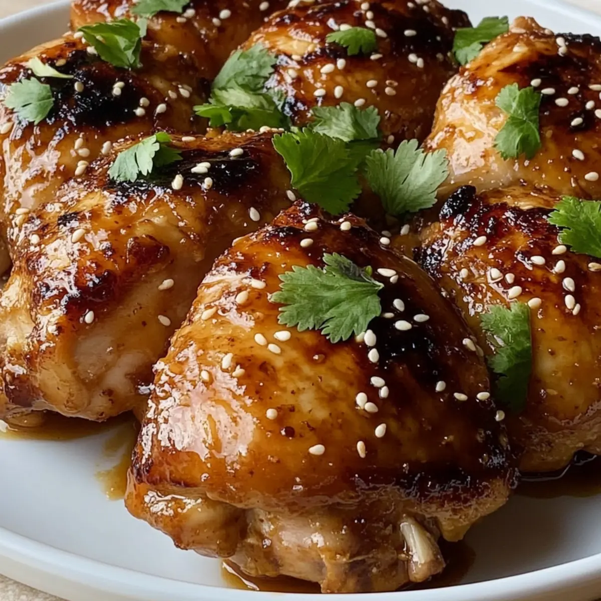- Remove chicken from heat and let it rest for a few minutes. Garnish with cilantro and sesame seeds before serving.