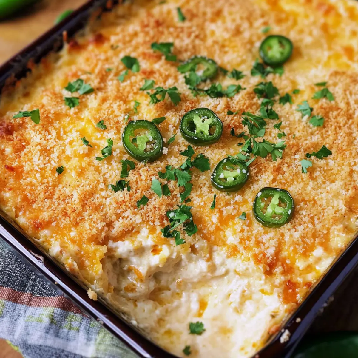 These Cheesy Jalapeno Popper Dip preparations are a lifesaver for busy cooks! You can mix the dip ingredients (cream cheese, jalapenos, and cheeses) and store them in an airtight container up to 24 hours in the fridge. To keep the crunchy topping fresh, prepare the Panko mixture separately and refrigerate it in a separate container. When you’re ready to bake, simply spread the dip in the dish, sprinkle on the topping, and bake for 15-20 minutes until golden and bubbly. This approach not only saves time but ensures your dip remains just as delicious when served warm, delighting your guests effortlessly!