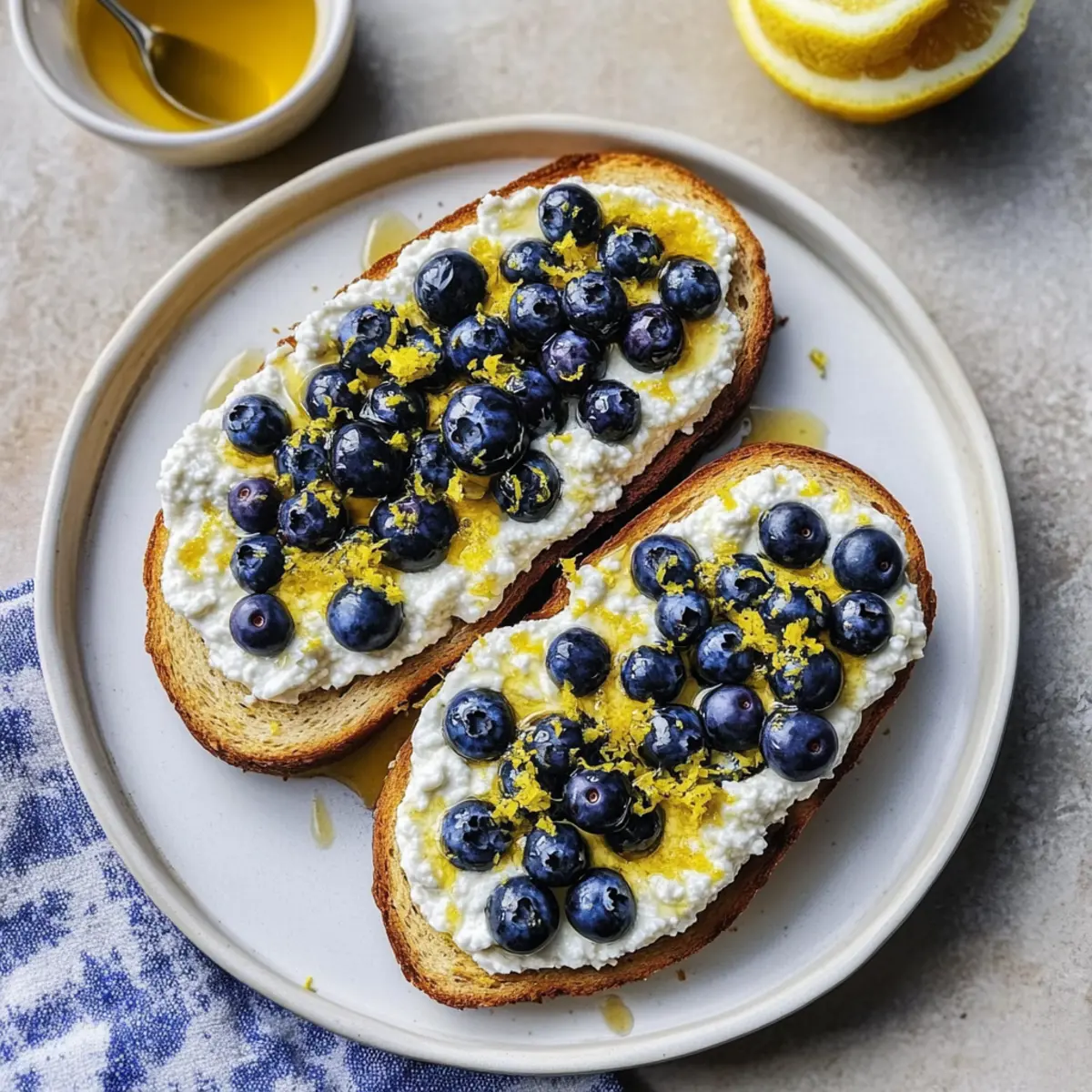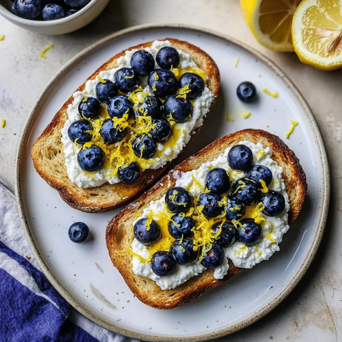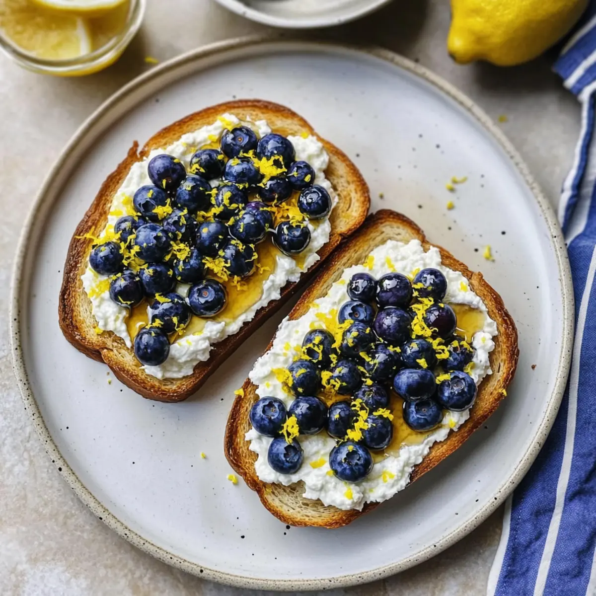 Perfect Ricotta Spread: Avoid clumping by letting ricotta sit at room temperature for a few minutes before spreading. This will create a smoother texture for your Lemon Blueberry Ricotta Toast.