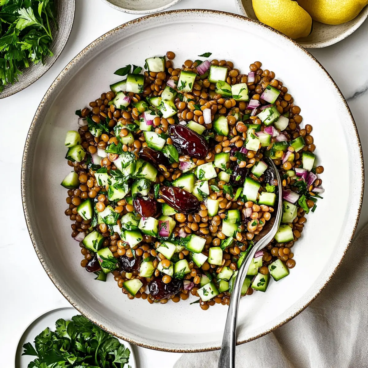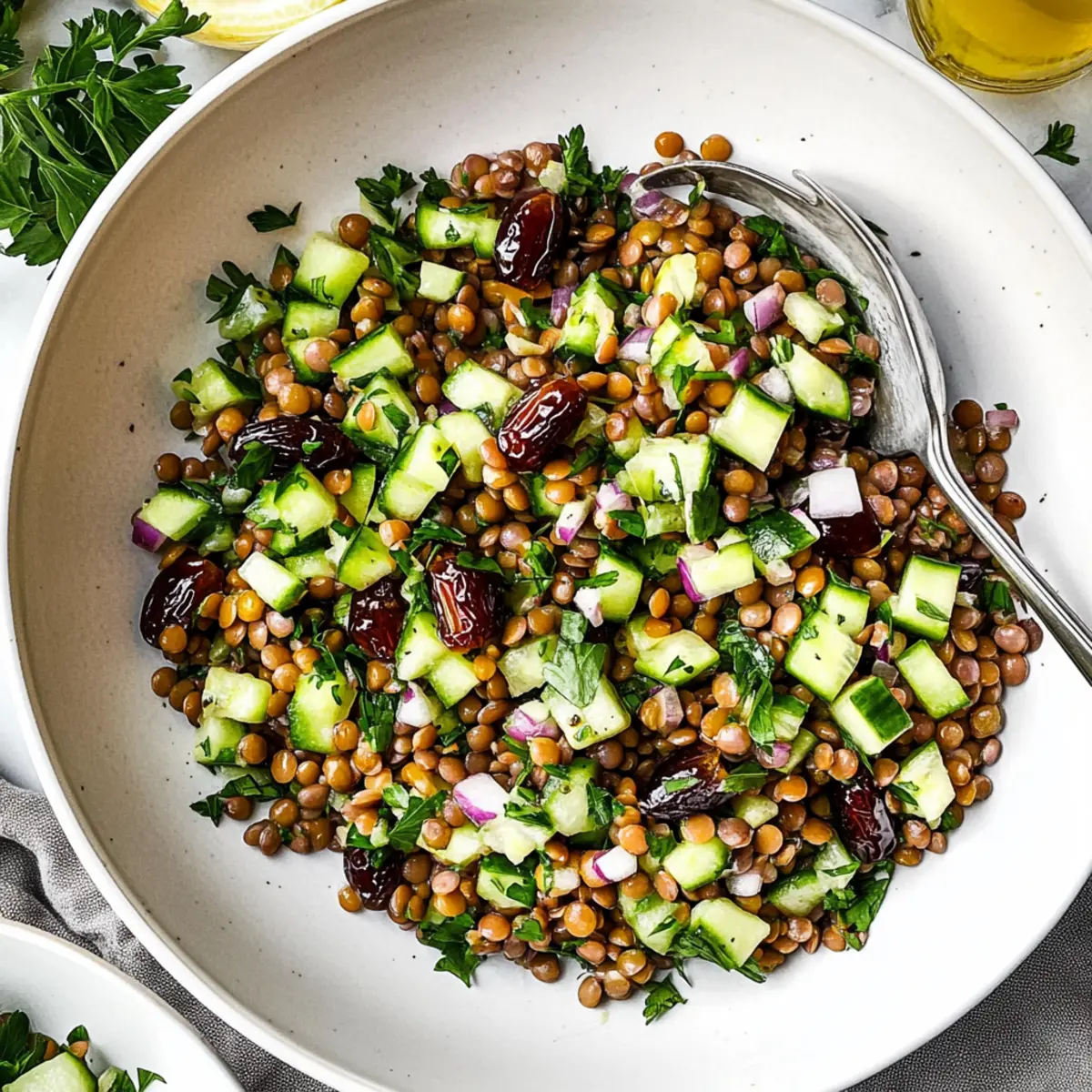 Absolutely! If you want to freeze your Lentil Salad, it can last for up to 3 months. However, keep in mind that the texture of cucumbers and dates may change when thawed. To freeze, portion the salad into airtight freezer bags or containers, making sure to squeeze out any excess air. When ready to eat, thaw in the fridge overnight and enjoy cold or gently reheat with a splash of water.