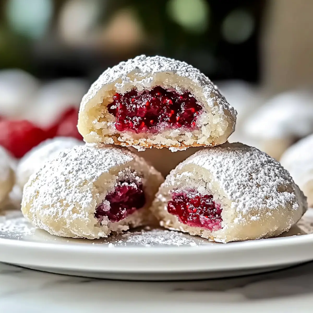 Tiny Flavor Bombs: Each bite of these Raspberry Almond Snowball Cookies is a delightful explosion of sweetness and tartness, truly elevating your holiday dessert spread.
