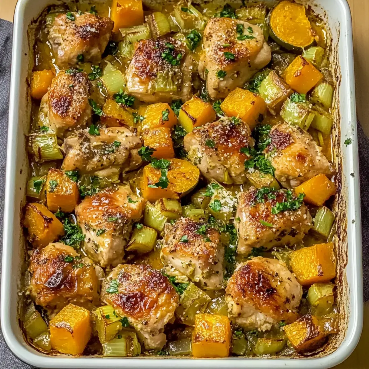 Cozy Roasted Chicken Leek and Butternut Squash Bake Delight