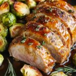 • Remove the pork tenderloin from the oven and let it rest for 5 minutes before slicing. Serve the pork with the roasted potatoes and Brussels sprouts, drizzling any remaining glaze over the top for extra flavor.