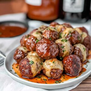 These Smoked Stuffed Meatballs with a Sweet BBQ Glaze are a smoky, cheesy, and flavorful delight. The tender meatball exterior pairs perfectly with the gooey mozzarella center and sweet barbecue glaze, making them a crowd-pleaser for any occasion. Try them once, and they’ll become a staple in your recipe collection!