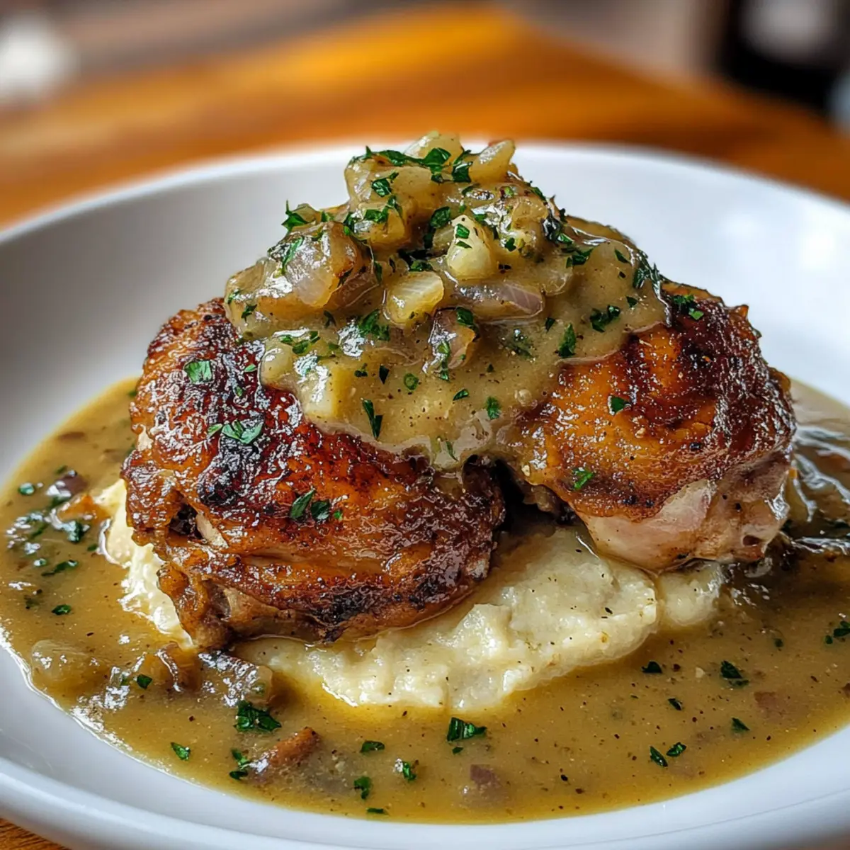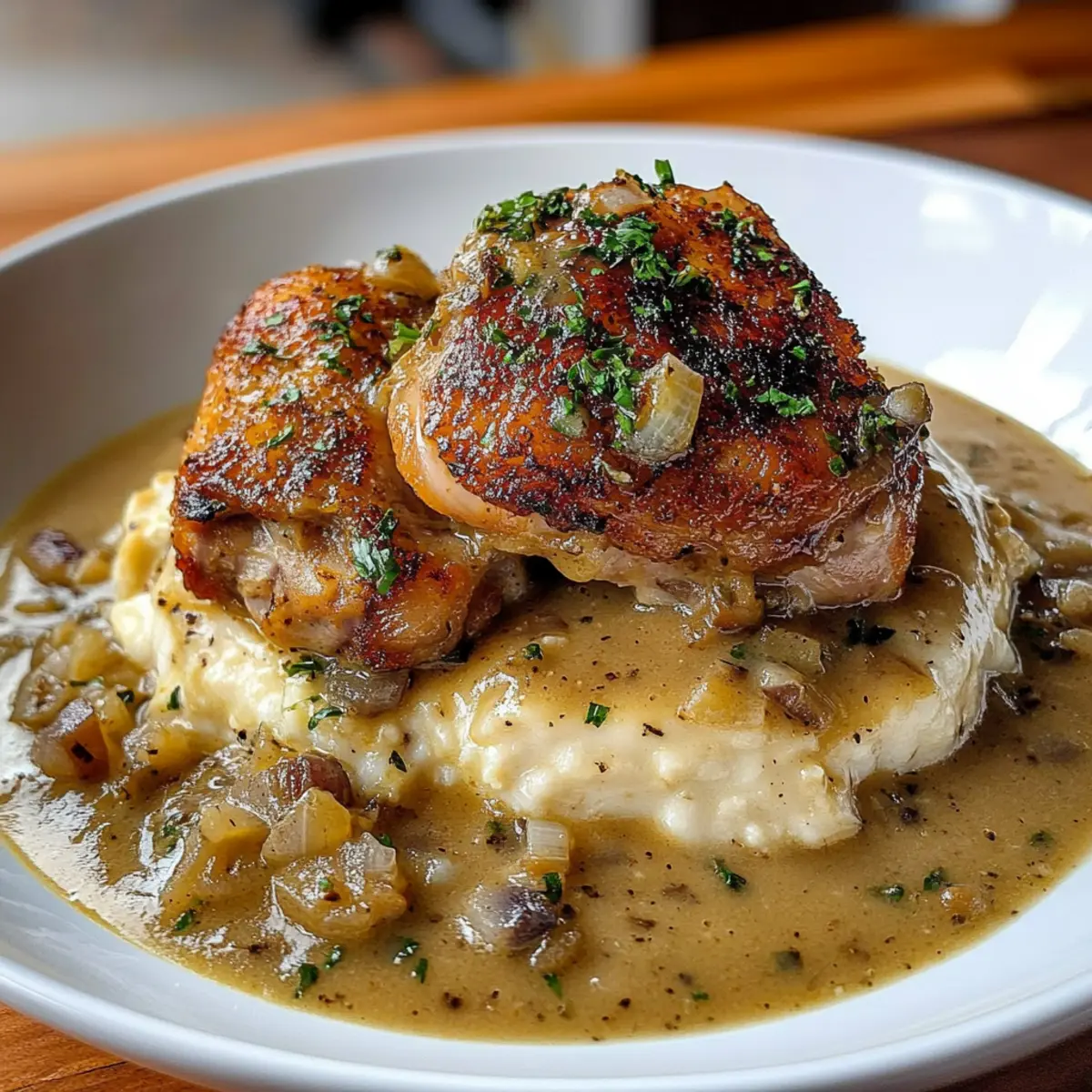 Tender Smothered Chicken Thighs in Creamy Gravy Delight
