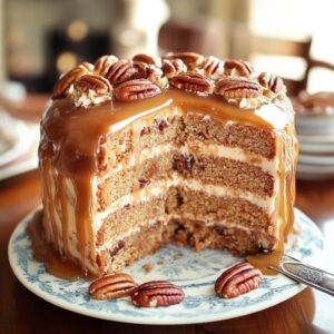 This Southern Pecan Caramel Cake is a delightful combination of sweet, nutty, and buttery flavors that melt in your mouth. The tender cake layers, rich frosting, and crunchy pecans make it a standout dessert for any celebration. Give this recipe a try, and experience a slice of Southern charm that will have everyone asking for seconds!