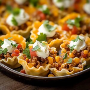 These Taco Ranch Bites are the perfect combination of crispy, creamy, and savory goodness. The taco-seasoned beef pairs beautifully with sharp cheddar cheese and tangy Ranch dressing, all served in delicate phyllo tart shells. Whether you’re hosting a big party or just want a tasty snack, these bites will disappear in no time!
