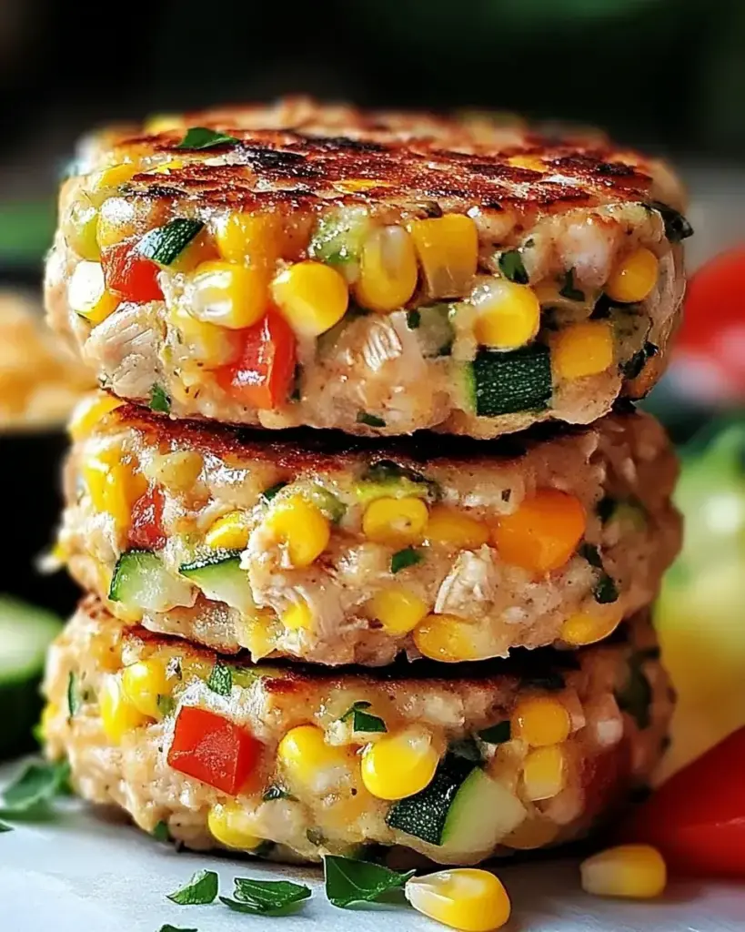 Zesty Chicken Zucchini Corn Burgers are a flavorful and healthy option for a delicious meal, combining ground chicken, zucchini, and corn into a tasty patty.