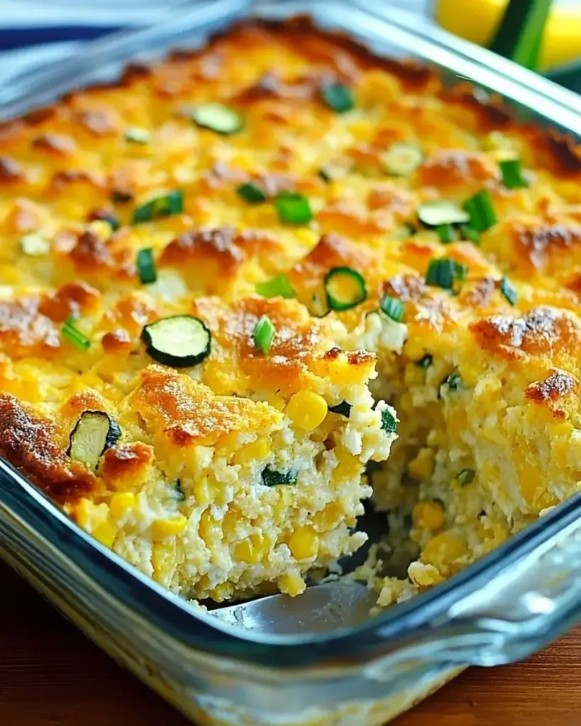 A delicious and easy-to-make Zucchini Cornbread Casserole that combines the flavors of zucchini and corn in a cheesy, savory dish.
